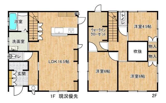 全室洋間で、リビング天井は吹き抜け仕様。開放的な空間が広がっています。