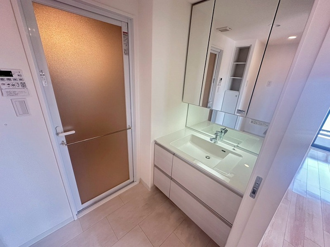 清潔感溢れる独立洗面台です